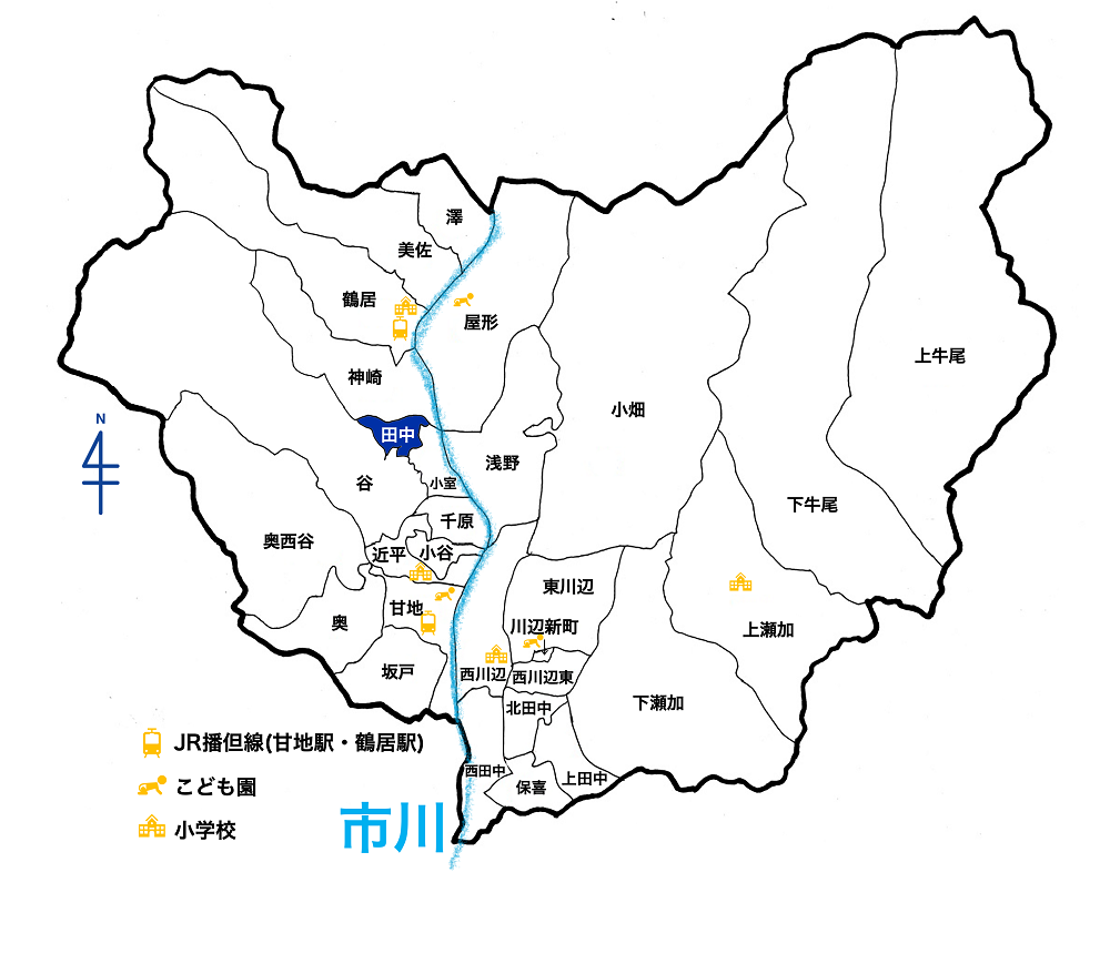 市川町役場(2.5㎞)、文化センター・図書館(3.5㎞)、スポーツセンター(4.2㎞)