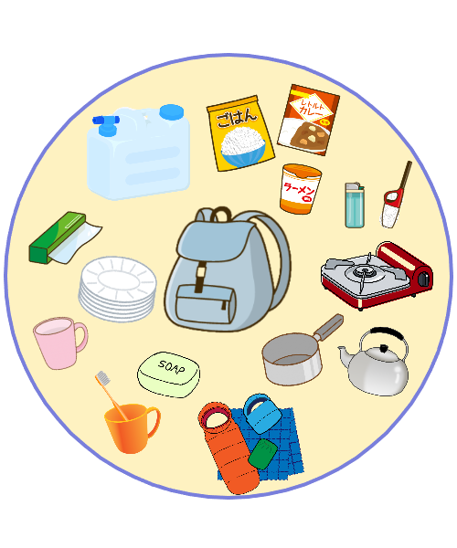 家屋などの安全が確認後、災害復旧までの数日間を過ごすための防災グッズです。