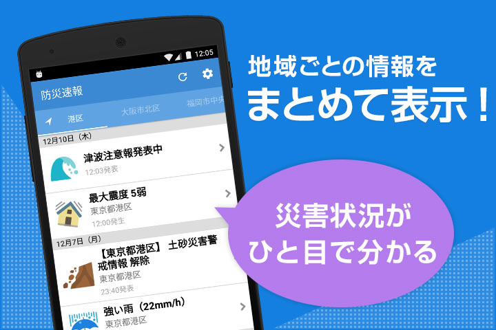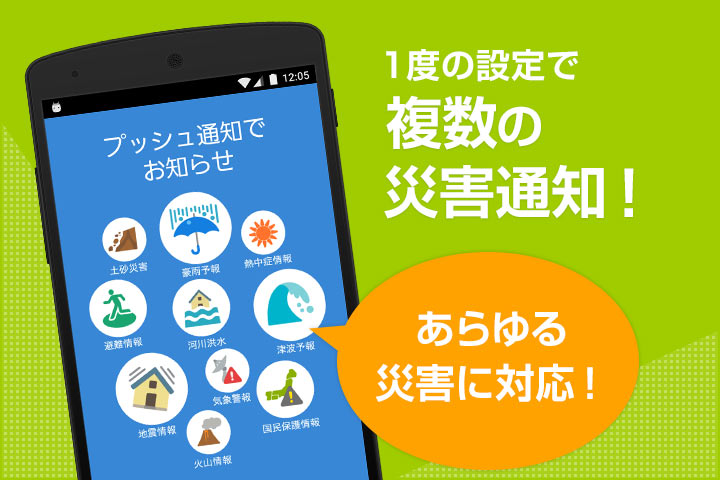 ヤフー株式会社が提供する緊急地震速報や豪雨予測などをスマートフォンやタブレット端末でご利用できるアプリでお知らせするサービスです。